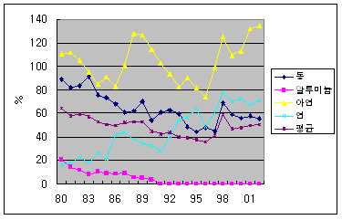 1982-2002년 생산량 연평균 8.9% 증가 … 제련기업 생산설비 풀가동 한국은 비철금속 자원이 부족할 뿐만 아니라 에너지 또한 풍부하지 못하기 때문에 비철금속산업 환경이 전반적으로 열악하고 경쟁력이 취약한 편이다.비철금속은 경제개발 단계에서 필수 원자재일 뿐만 아니라 전략 물자로서 중요성을 지니고 있기 때문에 국내수요의 전량을 수입에만 의존할 수도 없는 실정이어서 정부는 1970년대와 1980년대에 걸쳐 기초 원자재의 일정 부분을 국내에서 공급하는 정책을 펼쳐왔다. 그러나 1990년대 들어 세계화, 국제화 바람이 거세게 불어 닥치면서 비철금속산업 정책이 정부주도에서 민간주도로 변화하고 시장개방을 통해 수급의 안정을 도모하는 전략으로 전환하게 됐다.