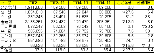 표, 그래프: | Toluene 수급현황(2004. 11) | <화학저널 2004/02/17> |