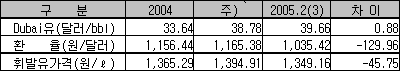 산자부, 환율 10월 상승하면 유가 3원 하락효과 … 석유의존도 하락 원화환율이 10원 떨어질 때마다 국내 휘발유 가격이 리터당 3원 가량 하락하는 효과가 있는 것으로 분석됐다.최근 원화환율 급락이 중동산 두바이(Dubai)유 가격급등을 상당부분 상쇄함으로써 국내 석유제품 가격상승을 억제하는 효과가 있음을 의미하는 것이어서 주목된다. 산업자원부가 3월4일 발표한 <국제유가 동향과 대책>에 따르면, 원화환율 10원 하락은 달러화로 결제되는 원유 수입 때 리터당 3원(정유회사 공장도가격 기준)의 인하효과를 가져와 환율을 감안할 때 유가가 크게 올랐던 2004년 8월보다 최근 휘발유 가격이 리터당 약 39원 낮아지는 효과를 낳은 것으로 분석됐다. 실제 2004년 8월 4째주 평균환율은 1165.38원으로 2005년 2월 3째주의 135.42원과 비교했을 때 129.96원이나 높았으며, 국내 주유소 휘발유 평균가격은 2004년 8월 리터당 1394.91원으로 2월 평균 1349.16원보다 45.75원 높았다. 결국 두바이유 가격이 연일 사상 최고가 행진을 계속하면서도 국내 주유소 휘발유가격이 오히려 2004년 8월보다 45.75원 낮은 것은 39원 가량이 환율하락 효과 때문으로 분석되고 있다.