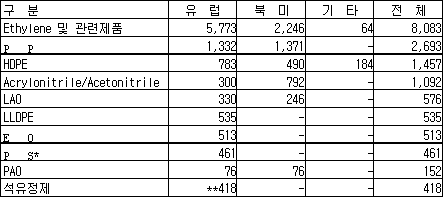 BP는 BP Solvay Polyethylene Europe의 지분 50% 및 BP Solvay Polyethylene North America 지분 51% 인수대금으로 총 12억달러를 지급한 것으로 알려졌다. BP는 Nova와도 PS(Polystyrene) 사업을 50대50으로 합병해 유럽 최대의 PS 생산기업을 설립할 계획이다. Nova 및 BP는 2005년 안에 최종 합병동의안을 체결할 것으로 예상된다. 표, 그래프: | BP의 O&D 생산능력 | <화학저널 2005/03/21> |