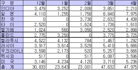 이에 따라 아시아 지역에서는 CPL 증설이 줄을 잇고 있다. DSM Nanjing Chemical은 2004년 Nanjing 소재 6만톤 플랜트의 생산능력을 14만톤으로 확대했고, 카프로도 2004년 12만톤을 증설해 24만톤의 생산능력을 보유하고 있다. <김건우 기자> 표, 그래프: | 중국의 CPL 수입현황 | <화학저널 2005/06/23> |