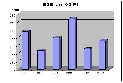 미국 STPP 시장은 1998- 2003년 연평균 0.5% 마이너스 성장률을 기록했으니 2007년까지는 연평균 약 0.5% 성장할 것으로 전망된다.