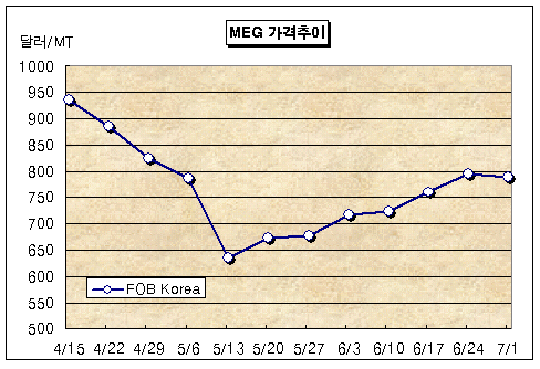 표, 그래프: | MEG 가격추이 | <화학저널 2005/07/07> |