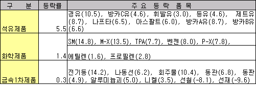 표, 그래프: | 공산품의 생산자물가 등락(2005.7) | <화학저널 2005/08/05> |