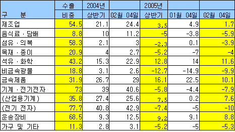 표, 그래프: | 제조업의 매출액증가율 비교 | <화학저널 2005/09/26> |