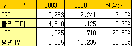 중국의 TV용 CRT 수요 급증으로 … 환경규제 엄격해 지속 어려워 CRT(Cathode Ray Tube)용 납(Lead)이 중국의 TV 수요증가로 당분간 생명력을 연장할 수 있을 것으로 예상된다.영국 ILZ(International Lead & Zinc Study Group)에 따르면, 중국의 TV 세트용 CRT 시장이 확대돼 납 수요가 증가하며 다른 용도에서의 납 수요 감소세를 다소나마 상쇄시키고 있는 것으로 나타났다. 아시아 시장의 TV 및 컴퓨터 수요 폭발로 CRT는 시장전망이 밝지만 LCD(Liquid Crystal Display) 평면 스크린이 선진국에서 판매가 확대되면 성장세가 둔화될 것으로 전망된다. ILZ는 세계 정제납(Refined Lead) 수요는 2005년 725만톤으로 2.5% 증가하는 반면 중국의 수요 신장세는 8.1%에 달할 것으로 전망하고 있다. 미국과 유럽의 납 수요가 배터리 생산기업들이 플랜트 이전 추세로 2005년에도 여전히 낮은 수준에 머무를 것으로 전망된다. 중국은 중산층이 늘어나고 있어 CRT TV 코스트 경쟁력이 있는 것으로 평가돼 일부 한국 기업들이 시장 진출을 검토하고 있는 것으로 알려지고 있다. 그러나 소비자들의 선호가 변하고 환경규제 움직임이 본격화되면 CRT용 납 사용이 타격을 받을 것으로 전망되는데 현재 전세계의 80%에 달하는 TV Set이 튜브를 사용해 생산되지만 CRT 시장은 2005년 11% 축소될 것으로 예상된다. LG Philips 디스플레이는 제품 가격 하락과 유럽 수요 감소에 따라 2005년 3월 영국 Durham 소재 CRT 플랜트를 폐쇄했다. 미국 CRT TV 매출은 2004-2005년 1990만개에서 860만개로 무려 57% 감소하는 반면 플라즈마(Plasma)와 LCD 매출은 2004년 340만개에서 2005년 530만개로 증가할 것으로 전망된다. 또 일본 CRT 출하는 2004년 31.3% 감소한 반면 LCD는 90.5% 증가했다. LCD는 해상도의 우수성을 차치하고서라도 CRT TV보다 더 큰 규격으로 생산이 가능하다는 장점이 있어 삼성전자는 최근 80인치 LCD와 120인치 플라즈마 패널을 출시했다. 반면, CRT는 대각선 길이 32인치 이상으로 생산하기가 거의 불가능하다.
