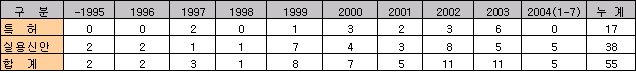특허청은 휴대용 비데가 여행이나 출장이 잦은 사람 뿐만 아니라 어린아이를 둔 주부들에게도 아주 유용한 제품으로 청결유지 및 질병예방에 효과가 있을 것으로 기대하고 있다. 표, 그래프: | 휴대용 비데 관련기술 출원동향 | <화학저널 2005/11/25> |
