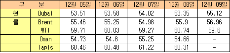 12월9일 55.12달러로 1.77달러 급등 … WTI는 1.14달러 급락