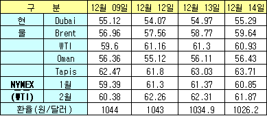 12월14일 55.29달러로 0.32달러 상승 … Brent 상승에 WTI는 하락