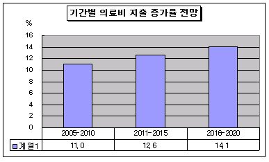 전문가들은 향후 5년간 의료비 지출은 11% 증가할 것이며 의약품 시장 성장률도 장기간 10%를 상회할 것으로 전망했다. 의료비 지출은 2004년 16조원에서 2020년 105조원까지 증가할 것으로 예상되고 있다. 다만, 늘어나는 재정부담으로 건강보험의 재정수지에 위험요소가 증가할 가능성이 있으며 의약분업 이후 다국적 제약기업들의 시장점유율이 높아지고 있어 경쟁 심화가 우려되고 있다. 전문가들은 적극적으로 신약 및 제네릭의약 개발로 해외시장에 진출해야 한다고 지적하고 있다. LG생명과학은 퀴놀론계 항균제인「팩티브」를 개발해 2004년 미국시장 진출에 이어 2006년 유럽시장에 진출할 계획이며 종근당은 항암제인「캄토벨」을 개발해 2008-2009년에 미국시장에 진출할 계획이다. 한편, 1989-2000년 미국에서 승인된 1035개의 신약중 35%만이 NME(New Molecular Entity)인 것으로 나타나 국내 제약기업들도 신약개발에 대한 접근법 재고를 모색해야 할 것으로 지적되고 있다. Standard IMD의 평균 약가는 65달러에 불과했으나 Priority NME의 약가는 91달러, Priority IMD의 약가는 142달로 부가가치가 매우 높은 것으로 나타났으며 천연물 신약은 개발기간과 비용 측면에서 장점이 있는 것으로 나타났다. 또한 대형품목의 제네릭 의약품 출시는 신약출시 못지않은 높은 부가가치 창출이 가능하며 정부의 제네릭의약품에 대한 장려책은 앞으로 지속될 것으로 전망돼 발빠른 제네릭의약품 개발도 좋은 대안으로 지적되고 있다. <박지영 기자> 표, 그래프: | 기간별 의료비 지출 증가율 전망 | <화학저널 2006/01/06> |
