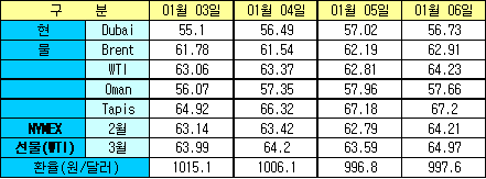 1월6일 WTIㆍBrent 1달러 이상 급등 … Dubai유는 0.29달러 하락