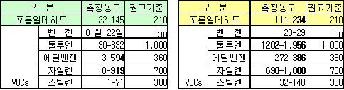 건교부, 신차 유해물질 배출조사서 기준 초과 … 관리기준 마련 시급 국내에서 제작되는 일부 새 차에서 유해물질이 신축 아파트 실내공기질 권고기준을 초과해 검출됐다.건설교통부에 따르면, 교통안전공단 자동차성능시험연구소에 의뢰해 2005년 5월부터 연말까지 승용차 7종, 대형승합차 2종을 대상으로 유해물질 배출실태를 조사한 결과, 일부 차종이 신축아파트 실내공기질 권고기준을 넘어섰다. 측정 유해물질은 벤젠(Benzene), 톨루엔(Toluene), 에틸벤젠(Ethylbenzene), 자일렌(Xylene), 스티렌(Styrene) 등 휘발성유기화합물(VOCs)과 포름알데히드(HCHO)이며 상온(25℃)에서 2시간 밀폐된 승용차(제작일로부터 39-177일 경과), 승합차(56-59일)에서 측정했다. 측정결과에 따르면, 제작된 지 177일된 차종 A는 에틸벤젠이 권고기준(㎥당 360㎍)의 1.65배인 595㎍, 자일렌은 권고기준(700㎍)의 1.31배인 919㎍이 검출됐다. 포름알데히드는 승용차에서는 권고기준(210㎍) 이하로, 승합차에서는 234㎍까지 나왔으며 발암물질인 벤젠도 권고기준(30㎍)에는 못 미치지만 차종 B는 22.05㎍까지 발견됐다. 포름알데히드나 휘발성유기화합물은 새 자동차의 실내 내장재 등에서 배출됐으며 피로, 두통, 눈의 자극 등 새차 증후군을 유발한 것으로 조사됐다.