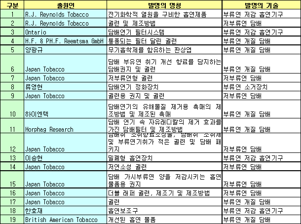 표, 그래프: | 로하스 담배 특허 출원현황 |