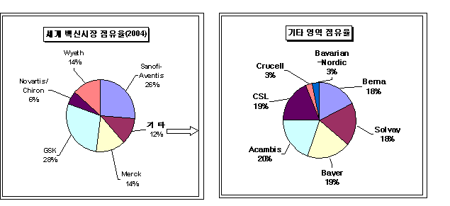 표, 그래프: | 세계 백신시장 점유율(2004) | 기타 영역 점유율 |