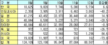12월 8만8567톤으로 1.8% 증가 … 일본산이 47.3% 차지 2005년 12월 중국의 PVC 수입이 증가세로 돌아섰다중국의 PVC(Polyvinyl Chloride) 수입은 2005년 9월부터 감소세가 이어졌으나 12월 수요증가에 힘입어 8만8567톤으로 1.8% 상승한 것으로 나타났다. 일본산이 14.9% 증가한 4만1888톤으로 전체 수입의 47.3%를 차지했고 타이완산은 2만7811톤으로 0.9% 감소했다.