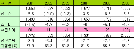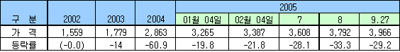2005년 들어서는 Cerro 광산의 지진피해(6월), 칠레 3위인 Tintaya 광산의 주민시위(6월), Konkola(잠비아 최대 동 광산(7월)과 Asarco(2005년 7-9월)의 파업이 영향을 미친 것으로 분석되고 있다. 동 생산기업들은 임금상승, 운송비용 및 전력요금 상승 등에 따른 원가부담도 동 가격상승에 일조하고 있다고 주장하고 있다. 따라서 주요 예측기관들은 2005년 동 가격이 톤당 3200-3400달러 수준을 보인 후 수급여건이 다소 완화되면 2006년 2500-3000달러로 15% 정도 하락할 것으로 예상하고 있다. 표, 그래프: | 동 가격동향 | 세계 동 수급 전망 | <화학저널 2006/02/10> |
