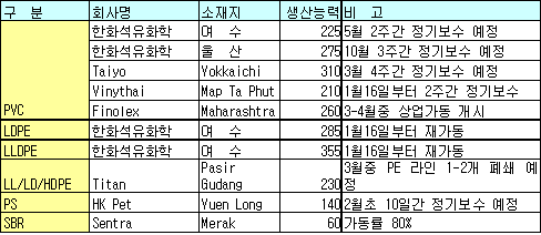 표, 그래프: | 아시아 주요 합성수지 정기보수 계획(2006) |