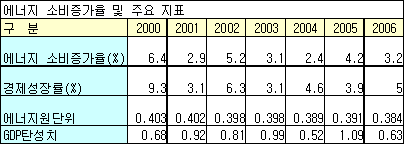 2005년 총에너지 수요 증가율은 4.2%로 경기부진과 고유가 상황이 지속되는 등 소비둔화 요인이 존재했음에도 불구하고 2005년 경제성장률인 3.9%보다 높았다.