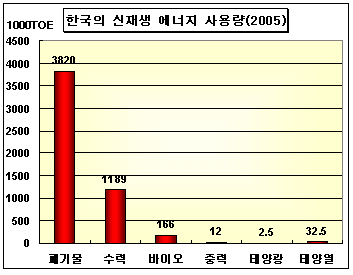 이원걸 산자부 제2차관은 “가급적 자동차 연료로는 바이오디젤이 5% 섞인 경유를 공급하도록 하되 주유소에 안내판을 붙이고 소비자가 거부하지 않는 선에서 할 것”이라며 “가격이 기존 경유보다 7.3원 정도 싸고 환경친화적이기 때문에 국민들도 협조해 줄 것으로 보고 있다”고 강조했다. 이와 함께 바이오디젤 원액 20%를 경유에 혼합한 연료유인 BD20은 하반기부터 자가정비 또는 자가주유가 가능한 업소에서 버스ㆍ트럭 등에 사용될 전망이다. 바이오디젤은 순환성에너지로 톤당 이산화탄소 2.2톤을 저감하는 온실가스 감축효과가 있으며 경유와 특성이 유사해 디젤자동차의 엔진 변경없이 경유와 혼합사용이 가능해 미국, 독일, 프랑스 등에서 1990년대부터 바이오디젤의 상용화가 추진됐다. 산자부는 협약기간이 종료되는 2년 뒤에는 바이오디젤 사용 의무화 등을 통해 이용을 대폭 확대하는 방안도 검토하고 있는 것으로 알려졌다. 산자부는 “협약체결이 바이오디젤 상용화시대를 본격 개시했다는 점에서 의미가 크고 에너지의 안정적 공급과 환경보호라는 2개의 목표를 성공적으로 달성하는 데 기여할 것”이라고 덧붙였다. 한편, 바이오디젤 이외에 석유대체연료로는 식물성 원료에서 추출한 알코올을 석유제품과 혼합한 알코올연료유, 석탄을 원료로 한 석탄액화연료유, 천연역청물질을 물ㆍ계면활성제 등과 혼합한 천연역청유, 석유화학연료유 등이 있다. 표, 그래프: | 한국의 신재생 에너지 사용량(2005) | <화학저널 2006/03/03> |