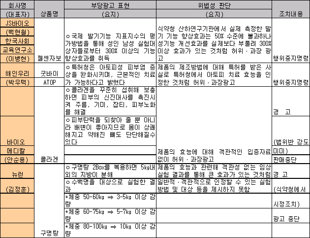 건강 기능식품 과장광고 시정조치
