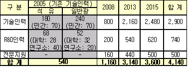 특히, 원유는 2월 국내 수입단가가 사상 처음으로 배럴당 60.02달러로 60달러대를 돌파했으며 이란 핵문제, 나이지리아 정정불안이 심화되면 추가적으로 상승할 가능성도 배제할 수 없다고 우려했다. 또 아연, 전기동을 중심으로 국제 비철금속 가격이 사상최고치를 이어가고 있으며, 2007년 이후에야 안정될 것으로 전망돼 2006년 산업활동의 어려움이 가중될 것으로 전망했다. 이에 따라 에너지 및 자원개발에 총력을 기울이기로 했다. 세계적인 자원 확보경쟁이 가속화되고 있는 가운데 2005년 해외자원 개발사업은 국내기업들의 적극적인 투자확대 및 정상외교로 신규사업 참여수가 27개, 투자 11억달러에 이르는 등 IMF 이전 수준을 회복했으며, 2006년에는 국내 38사(민간기업: 32사)가 32개국에서 211개(신규사업 89개) 해외자원개발 사업에 나설 계획이다. 민간 자원개발기업 대표들은 2006년 해외자원개발 신규사업 수가 전년대비 229% 급증했으나 정부 해외자원개발 예산은 4271억원으로 33.3% 증가에 그치는 등 투자자금 조달에 애로를 겪고 있어 대책마련이 시급하다고 밝혔다. 특히, 2006년 민간기업에 대한 해외유전개발 융자예산은 2185억원으로 2005년과 동일한 수준으로 책정돼 개별사업당 융자는 더욱 줄어들 것으로 우려했다. 해외자원 개발을 추진할 때 가장 큰 걸림돌로 작용하고 있는 전문 기술인력 부족 문제 해결을 위해 SK는 석유개발 장학생 제도를 도입하는 등 기업들은 해외자원개발 전문인력 육성을 위한 해외자원개발 산학장학생 제도를 지속적으로 확산키로 했다. 최근, 한국 지구시스템공학회 연구용역 결과에 따르면, 신규 고급기술 인력 수요는 2015년까지 10년 동안 총 3600명에 이를 것으로 전망된다. 한편, 전경련은 해외자원개발 촉진 환경을 조성하기 위해 해외자원개발 사업에 대한 ▲국가채무 보증제도 도입기반 조성 ▲세제지원 강화 ▲자원개발 전공자에 대한 병역특례제도 도입 등을 지속 추진할 방침이다. 표, 그래프: | 해외자원개발분야 전문기술인력 수요 | <화학저널 2006/03/31> |