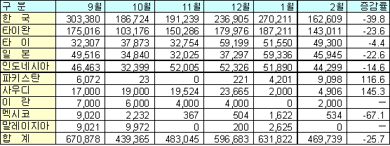 표, 그래프: | 중국의 PTA 수입동향(2005-06) | <화학저널 2006/04/07> |