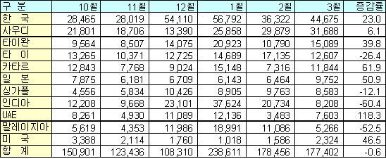 3월 4만4675톤으로 23.0% 급증 … 2위 사우디는 6.1% 증가 국산 HDPE(High-Density Polyethylene)가 중국 수입시장 점유율 1위를 장악하고 있다.중국의 한국산 수입물량은 3월 4만4675톤으로 23.0% 증가했으며 사우디와 타이완이 각각 3만1688톤과 1만5089톤으로 2-3위 그룹을 형성한 것으로 나타났다. 타이산은 상위권의 전반적인 증가세 속에서 26.4% 급감했으며 하위권에서는 감소세 속에서 아랍에미레이트연합(UAE)이 118.3% 폭증하고 미국이 46.5% 급증해 희비가 엇갈렸다.