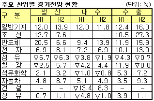 대한상의, 환율하락에 고유가 영향 커 …기계ㆍ반도체는 호조 석유화학산업의 2006년 하반기 경기전망이 어둡다는 보고서가 발표됐다.대한상공회의소가 발표한 <주요 업종의 2006년 상반기 실적 및 하반기 전망 조사>에 따르면, 2006년 하반기에는 기계ㆍ조선ㆍ반도체 등의 호조가 예상되는 반면, 섬유ㆍ철강ㆍ석유화학 등은 부진할 전망이다. 특히, 환율하락에도 불구하고 상반기에 이어 하반기에도 2자리대 수출증가가 예상되는 등 수출호조세가 지속될 것으로 전망됐다.