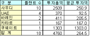 2005년 48억달러 투자 18기 신설 … 2007년 요소비료 1000만톤 목표 중동의 비료산업 투자가 활기를 띠고 있다.GOIC(Gulf Organisation for Industrial Consulting)에 따르면, GCC(Gulf Cooperation Council) 회원국의 총 투자액은 2005년 48억달러에 육박했으며 총 18기의 플랜트가 신설된 것으로 알려졌다. 25억달러를 투자한 사우디는 두드러진 실적을 보여 10기를 완공했으며 쿠웨이트와 바레인 투자총액에서 뒤를 바짝 추격한 것으로 나타났다.