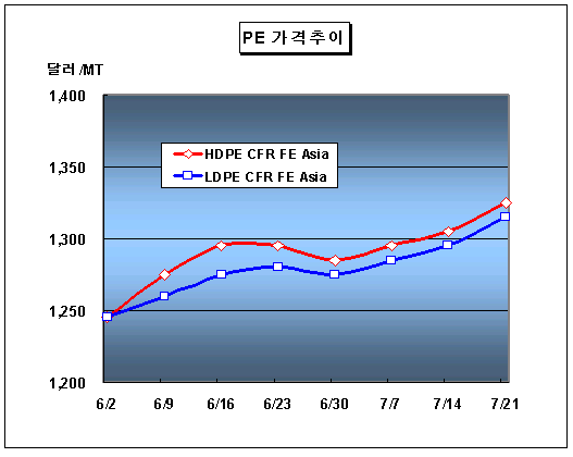표, 그래프: | PE 가격추이 | <화학저널 2006/07/26> |