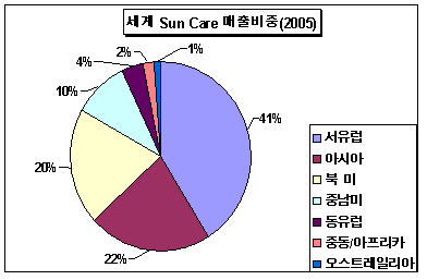 2005년 44억달러로 7% 성장 … 주요 메이저 신제품 출시 봇물 세계 Sun Care 시장의 성장성이 양호한 것으로 나타났다.Euromonitor에 따르면, 세계 Sun Care 시장은 2005년 44억달러로 전년대비 7.0% 성장했으며 북미시장이 8억8400만달러를 형성한 것으로 알려졌다. 미국시장은 2005-10년 연평균 8.5% 성장할 전망으로 자외선 차단제가 연평균 4.0% 성장해 2010년 8억5500만달러, Self Tanning 제품이 연평균 21.0% 급증해 3억7800만달러에 이르며 After Tanning 제품은 연평균 5.0% 감소해 2100만달러에 그칠 것으로 예상된다. 미국시장의 Sun Care 매출(Wal-Mart 제외)은 2005년 4억3200만달러로 10.0% 증가했으며 판매량은 8.0% 늘어난 것으로 집계됐다.