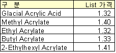 표, 그래프: | 아크릴 모노머 가격(2006. 8) |