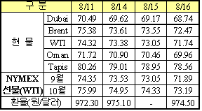 표, 그래프: | 국제유가 변화 | <화학저널 2006/08/17> |
