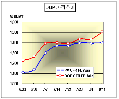 표, 그래프: | DOP 가격추이 | <화학저널 2006/08/18> | ||||||||||||||||