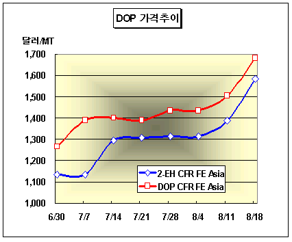 표, 그래프: | DOP 가격추이 > | <화학저널 2006/08/21> | ||||||||||||||||