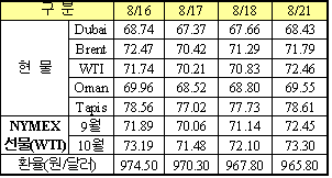 표, 그래프: | 국제유가 변화 | <화학저널 2006/08/22> |
