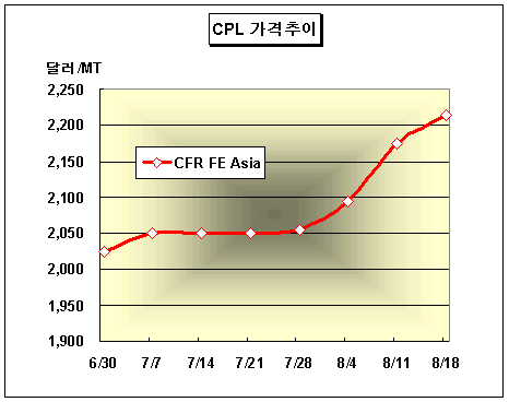표, 그래프: | CPL 가격추이 | <화학저널 2006/08/23> |
