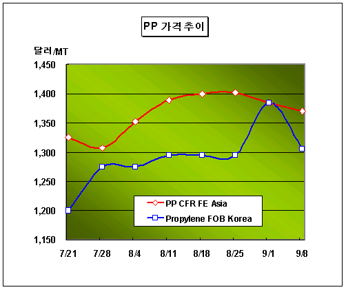 표, 그래프: | PP 가격추이 | <화학저널 2006/09/11> |