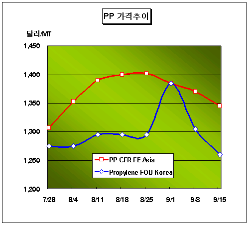표, 그래프: | PP 가격추이 | <화학저널 2006/09/18> |