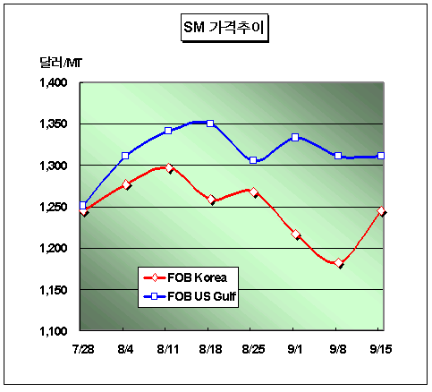 표, 그래프: | SM 가격추이 | <화학저널 2006/09/19> |