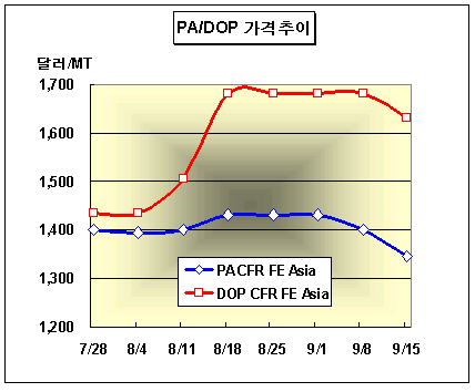 표, 그래프: | PA/DOP가격추이 | <화학저널 2006/09/22> |