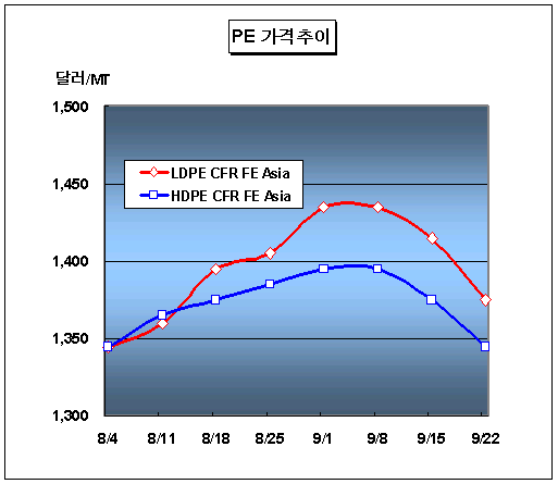 표, 그래프: | PE 가격추이 > | <화학저널 2006/09/25> |