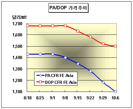 표, 그래프: | PA/DOP 가격추이 | <화학저널 2006/10/12> |