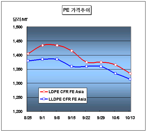 표, 그래프: | PE가격추이 | <화학저널 2006/10/16> |