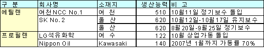표, 그래프: | 아시아 주요 크래커의 가동현황(2006) | <화학저널 2006/10/17> |