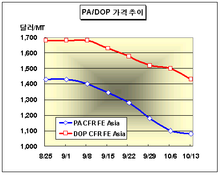 표, 그래프: | PAㆍDOP가격추이 | <화학저널 2006/10/17> |