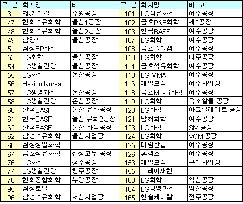 온실가스 감축 자발적 협약 체결 … 화학 26사 환경친화기업 지정 환경부와 169개 환경친화기업이 온실가스 감축을 위한 자발적 협약을 체결했다.이치범 환경부 장관과 환경친화기업협의회 회장단. 환경친화기업의 대표들은 11월9일 오전 11시 수원 삼성전기 사업장에서 <온실가스ㆍ대기오염물질 통합 감축을 위한 환경친화기업 자발적 협약>을 체결하고 서명식을 개최했다. 환경부는 국내 온실가스 감축의무에 대한 국제적 요구가 증가하고 있는 상황에서 국내 사업장의 체계적이고 자발적인 온실가스 감축 이행을 촉구했으며 환경친화기업들은 청정개발체제(CDM) 사업, 청정연료 전환, 설비 개선 등에 대한 목표를 결의했다.