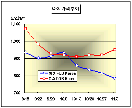 표, 그래프: | O-X 가격추이 | <화학저널 2006/11/09> |