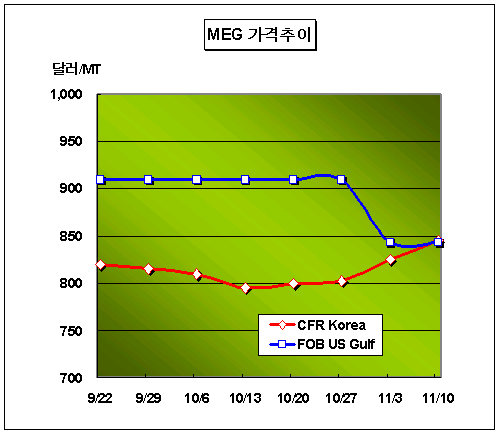 표, 그래프: | MEG 가격추이 | <화학저널 2006/11/14> | ||||||||||||||||