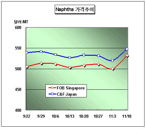 표, 그래프: | Naphtha 가격추이 | <화학저널 2006/11/14> |